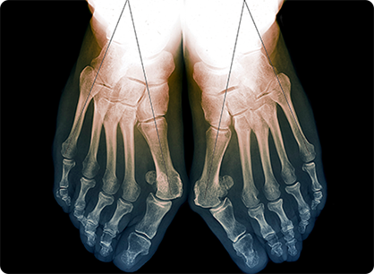 엄지발가락이 둘째 발가락 쪽으로 삐뚤어지면서 중간 관절 부위가 혹처럼 튀어나와 통증을 일으키는 질환입니다.