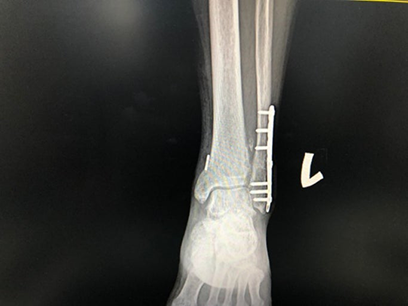 발목의 뼈가 부러졌을 때 이를 원래 위치로 복원하고, 그 위치를 고정시켜 회복을 돕는 수술입니다.